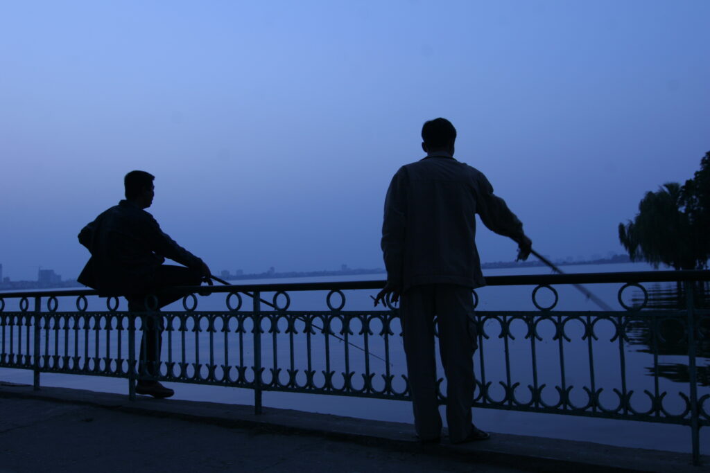 Im lặng. Gió thổi qua mặt như ngừng lại. Con rồng neon nhìn từ trên trần bên trong xuống.
