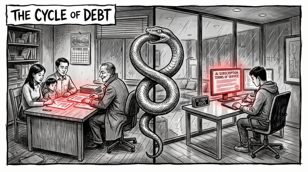 Và người dùng thì nghiện mô hình mới. Zitron nhận xét: dịch vụ nào không cung cấp mô hình mới nhất thì không cạnh tranh được với dịch vụ có, và vì chi phí luôn bị giấu sau thuê bao cố định, kỳ vọng mặc định luôn là “mô hình mới nhất, cùng giá tiền.” Y hệt tâm lý “nhà sẽ luôn tăng giá, mình sẽ refinance trước khi lãi suất nhảy” của người mua nhà năm 2005.