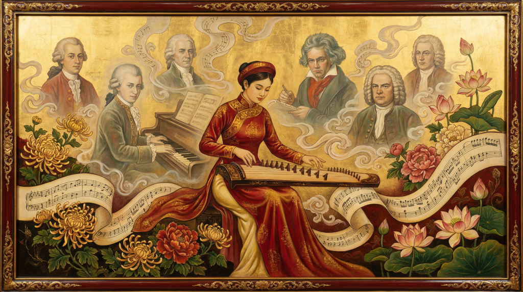 Mình hay nghe nhạc cổ điển. Nghe nhiều thì phát hiện chuyện hơi buồn cười: concerto của Mozart, Mendelssohn, Vivaldi — cấu trúc gần giống nhau đến mức nghi ngờ. Mở đầu bằng dàn nhạc, soloist vào sau, chương giữa chậm lại, chương cuối tăng tốc kết bằng cadenza. Cái khung này — sonata form — lặp đi lặp lại suốt mấy trăm năm. Mozart chép ý từ Haydn. Beethoven học từ Mozart. Brahms tự gọi mình là “kẻ đi sau cái bóng khổng lồ.”
