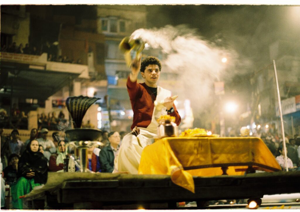 Người chèo thuyền nói bằng giọng bình thản như kể chuyện thời tiết: mỗi ngày có khoảng 200 đến 300 thi thể được hỏa táng ở đây. Gỗ đàn hương được mua theo cân. Gia đình giàu dùng gỗ trầm, gia đình nghèo dùng gỗ bạch dương. Người con trai cả — đầu cạo, mình khoác vải trắng — là người châm lửa. Và khi lửa tàn, người con trai sẽ dùng một cây gậy đập vỡ hộp sọ người cha, để linh hồn thoát ra.