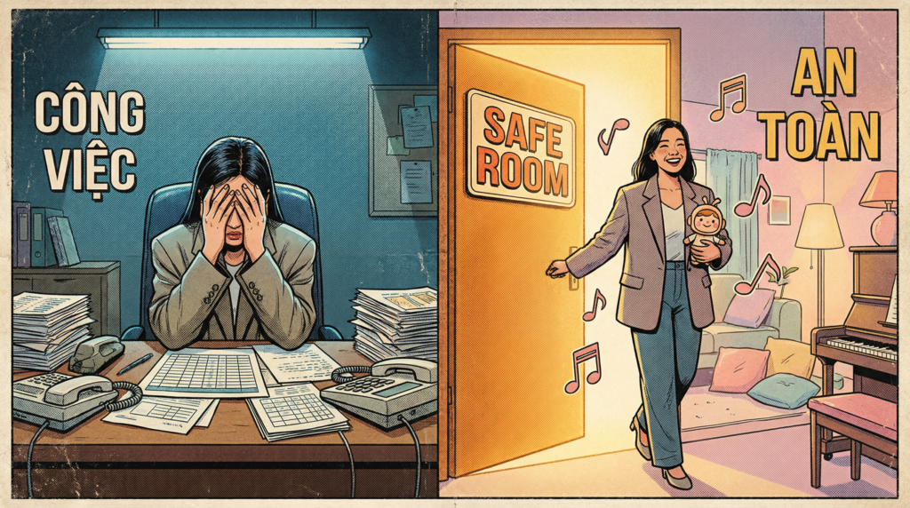 Nếu từng chơi tựa game sinh tồn Resident Evil, bạn thừa biết cảm giác tim đập thình thịch khi bị quái vật rượt dọc hành lang. Nhưng hễ đẩy cửa chui lọt vô căn phòng “Safe room”, nghe nhạc nền piano êm dịu bật lên, mọi điên loạn ngoài kia lập tức khựng lại sau cửa. Bạn được phép thở một hơi dài.