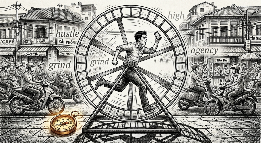 Câu hỏi cho bạn không phải “bạn có high agency không?” Câu hỏi là: la bàn của bạn — bạn đã calibrate nó lần cuối khi nào? Và nếu chưa — bạn đang chạy trên cối xay hamster nào?