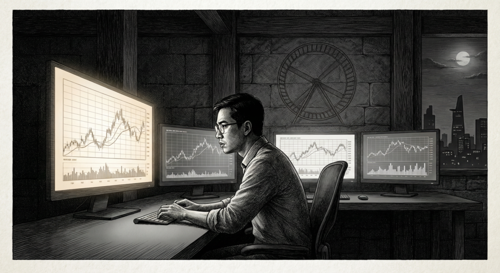 Cái còn lại là la bàn. Khả năng biết cái gì đáng làm trước khi hỏi làm thế nào. Khả năng ngồi lại khi bản năng bảo bỏ chạy. Khả năng nhìn vào đuôi phân phối thay vì chỉ nhìn base case. Khả năng yêu một người mà không cần họ hoàn hảo, đầu tư mà không cần thị trường xác nhận, nói chuyện với bố mẹ mà không cần họ hiểu hết.