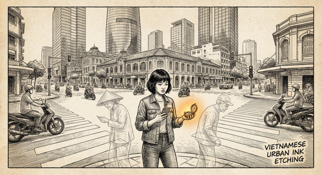 Thế hệ bố mẹ mình — và phần lớn thế hệ trước đó — sống theo mặc định tuân thủ. Nghe lời bố mẹ, nghe lời sếp, không thách thức hệ thống, không hỏi tại sao. Cái gì “đi ngược” thì bị gọi là “cứng đầu,” “không biết sống.” Chọn nghề? Bố mẹ chọn. Chọn trường? Bố mẹ chọn. Thậm chí chọn người yêu, đôi khi cũng có bàn tay sắp xếp. La bàn tồn tại — nhưng là la bàn mượn: của bố mẹ, của xã hội, của “người ta bảo.”