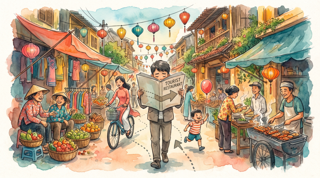 Nó y hệt như việc bạn xách một cuốn cẩm nang du lịch nổi tiếng bay đến một thành phố xa lạ. Bạn mở sách ra, đi bộ đúng đến cái quán ăn được xếp hạng năm sao, gọi đúng món đặc sản theo hướng dẫn, chụp đúng một tấm hình ở góc phố mà vạn người đã từng đứng. Trải nghiệm đó trơn tru và hoàn hảo. Nhưng khi bước lên máy bay trở về, bạn chợt nhận ra mình chẳng đọng lại một chút gì về nhịp sống hay văn hóa con người ở đó.