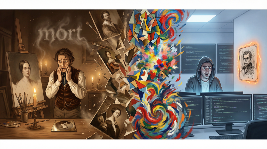 Nhưng hội họa không chết. Máy ảnh chỉ tước đi cái vỏ bọc “máy photocopy chạy bằng cơm” của nó, xô những người như Picasso hay Monet vào một góc tường không thể lùi xa hơn. Sự dồn ép đó đẻ ra trường phái Lập thể, Ấn tượng. Họ nghỉ vẽ hiện thực. Họ vẽ góc nhìn. NFX gọi đây là cú nhảy từ thực thi (Craft) sang sự biểu đạt gốc (Expression). Mình từng nhắc đến vòng lặp này trong bài phân tích về cái chết của họa sĩ chân dung thế kỷ 19.