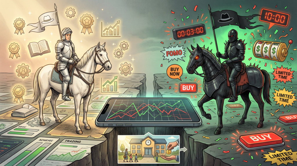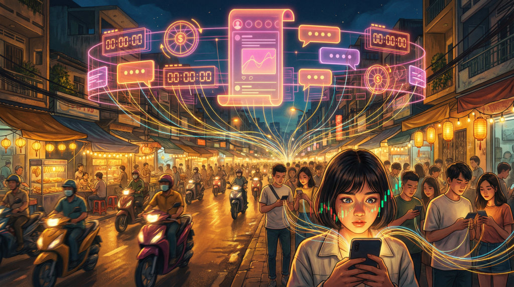 Ở Mỹ, lo âu là “tôi sẽ không bao giờ theo kịp.” Ở Việt Nam, lo âu là “nếu không nhanh thì cơ hội sẽ đóng lại.” Một bên là tuyệt vọng. Một bên là sốt ruột. Nhưng cả hai đều bị nền tảng giao dịch tóm lấy bằng cùng một bộ công cụ mũ đen: khan hiếm, FOMO, phần thưởng ngẫu nhiên.