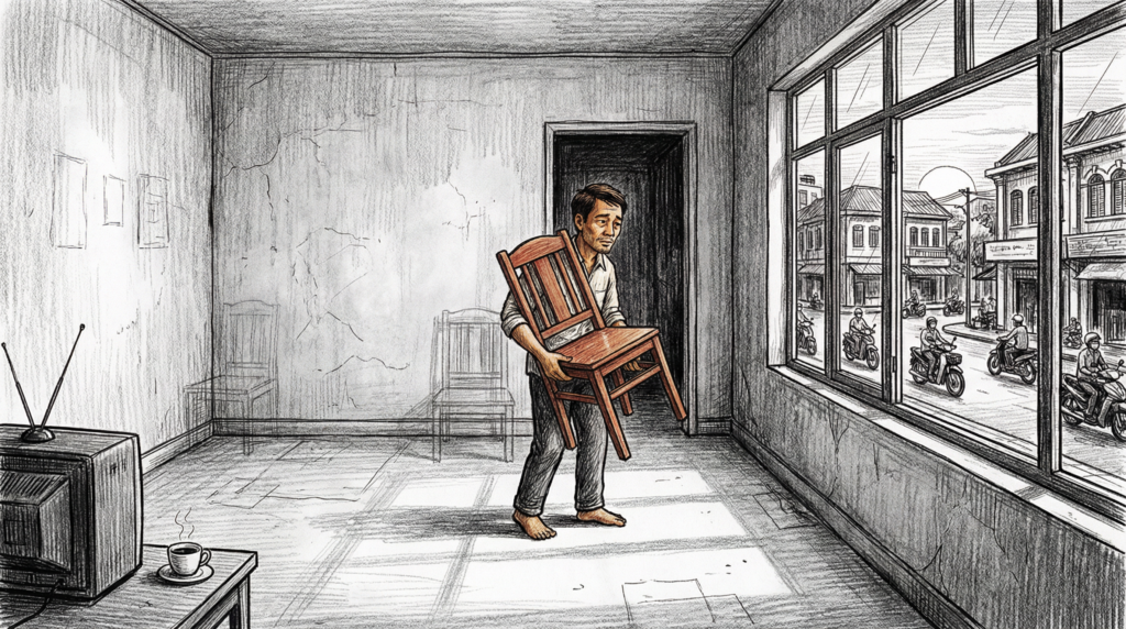 Nhưng toà nhà đó không sập một phát. Nó sập theo đợt. 15 phần trăm. Rồi 20 phần trăm. Rồi 20 phần trăm nữa. Mỗi đợt, ông CEO tung đồng xu, thị trường vỗ tay, và ở một góc đường nào đó, một xe nước cam vắng thêm vài cái ghế nhựa.