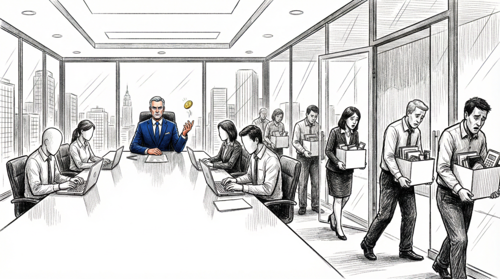 Khi công ty cắt 15% rồi 20% rồi 20% nữa, biên lợi nhuận quý tới đẹp hẳn. Cổ phiếu lên. Nhà đầu tư vỗ tay. Nhưng 15% đó, 20% đó, 20% nữa đó, họ cũng là người mua hàng. Họ mua iPhone. Họ trả tiền Netflix. Họ uống cam vắt hai mươi nghìn buổi trưa. Cắt lương họ hôm nay tức là cắt doanh thu của chính mình ngày mai.