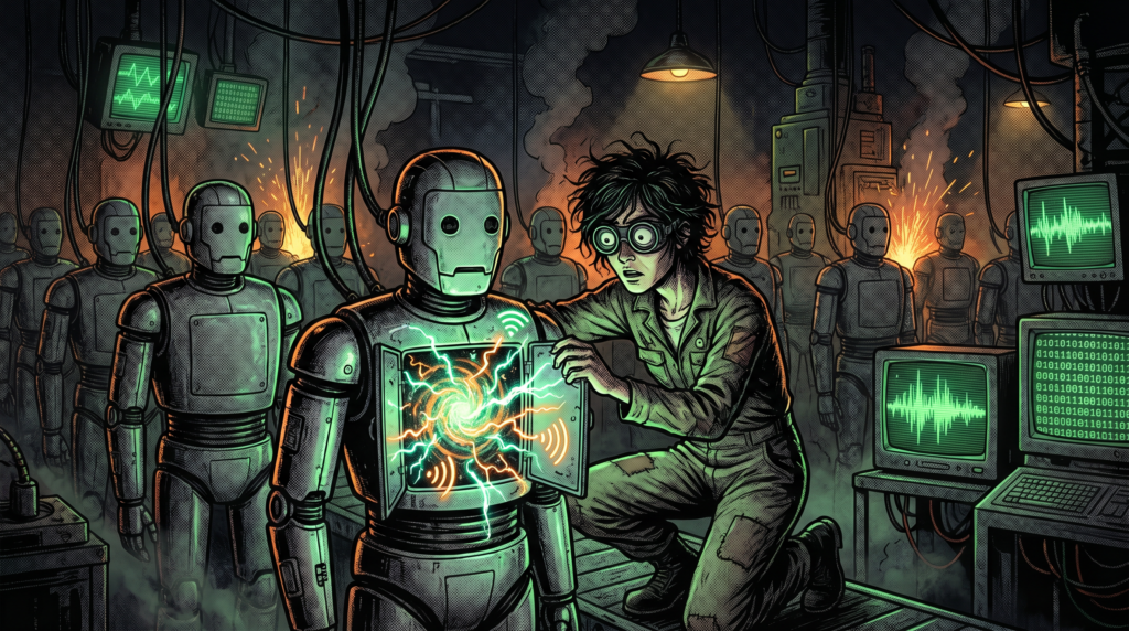 Hãy tưởng tượng một chiếc xưởng sản xuất robot im lìm trong đêm. Hàng ngàn cỗ máy đứng đó, vô danh và trống rỗng. Chúng đang đợi khoảnh khắc được cắm điện, đợi một cú rùng mình của vật lý để tự nặn ra danh tính độc bản cho riêng mình.