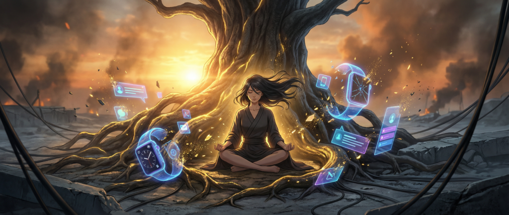 Người hiện đại có mọi thứ ông Bụt không có: thiết bị đo sóng não, nhẫn theo dõi giai đoạn ngủ, app đếm phút thiền mỗi ngày. Thiếu đúng một thứ: khả năng quan sát mà không chăm chăm đi tối ưu những gì mình đang quan sát.