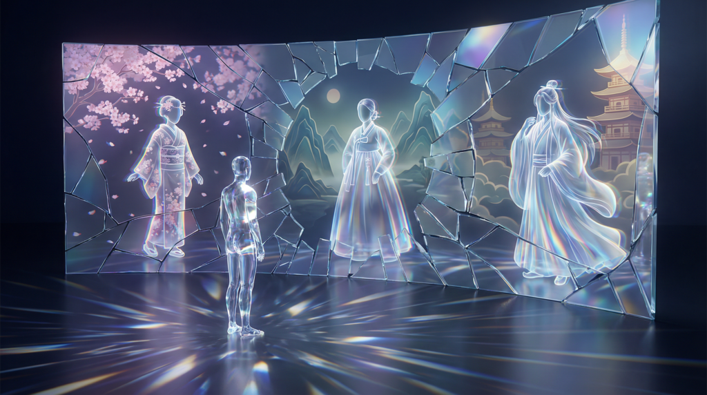 Nhưng dù cơ chế nào, có một điểm chung: gương chiếu ra đẹp hay xấu không phải gương cầm ở tay bạn. Cái gương đó đang được cầm bởi hệ thống — entertainment industry ở Hàn, mười lăm thế kỷ truyền thống bishounen ở Nhật, hai lý tưởng nam tính tranh chấp nhau ở Trung.