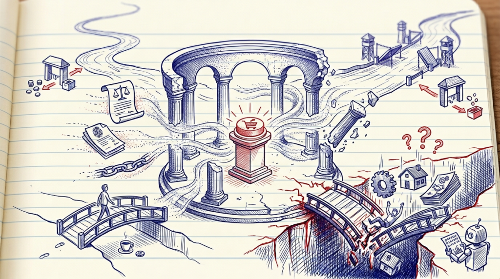 Khi agent nhảy vào giữa, khoảng cách đó không co lại. Nó giãn ra. Bây giờ có ba bên không tin nhau: người mua, merchant, và một phần mềm trung gian mà cả hai bên đều không kiểm soát được. Ai chịu trách nhiệm nếu agent mua sai? Ai hoàn tiền? Theo log của ai? Taylor thừa nhận trong bài viết gốc rằng nếu trách nhiệm pháp lý vẫn đè lên nhà bán (như Visa đề xuất), “hãy chờ đợi nhà bán nổi loạn và từ chối hàng loạt giao dịch.”