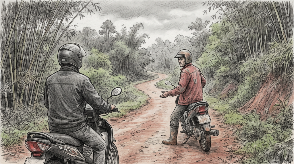 Hồi đó chưa có Google Maps với smartphone. Đi phượt thì bản đồ giấy luôn nhét trong balo nhưng bản đồ giấy không giúp được gì khi đứng giữa ngã ba mà ba hướng đều là cây, dốc, và im lặng. Xe mình là Wave, loại thợ sửa xe đồng bằng nào cũng thuộc lòng, nhưng vào đường rừng Mường Lát thì nó chỉ là cục sắt nhỏ đơn độc. Không áo giáp, không đồ bảo hộ, không đồng hành.