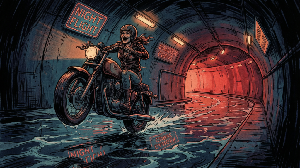 Trải nghiệm cực kỳ phê. Không giằng xóc. Không ma sát cản trở. Y như bay phi trọng lực. Nhưng sự thật tàn nhẫn là lúc đó bạn đâu còn cầm tài nữa. Lực quán tính đang lái xe hộ bạn. Mất hoàn toàn lực bám đường, lỡ mà chệch bánh vào góc cua, lựa chọn duy nhất của bạn là văng thẳng vào dải phân cách.
